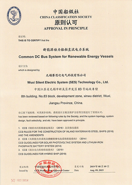 直流組網(wǎng)技術(shù)獲得中國船級社新能源動力原則認(rèn)可證書和中國船級社電力推進(jìn)系統(tǒng)設(shè)計認(rèn)可證明文件。