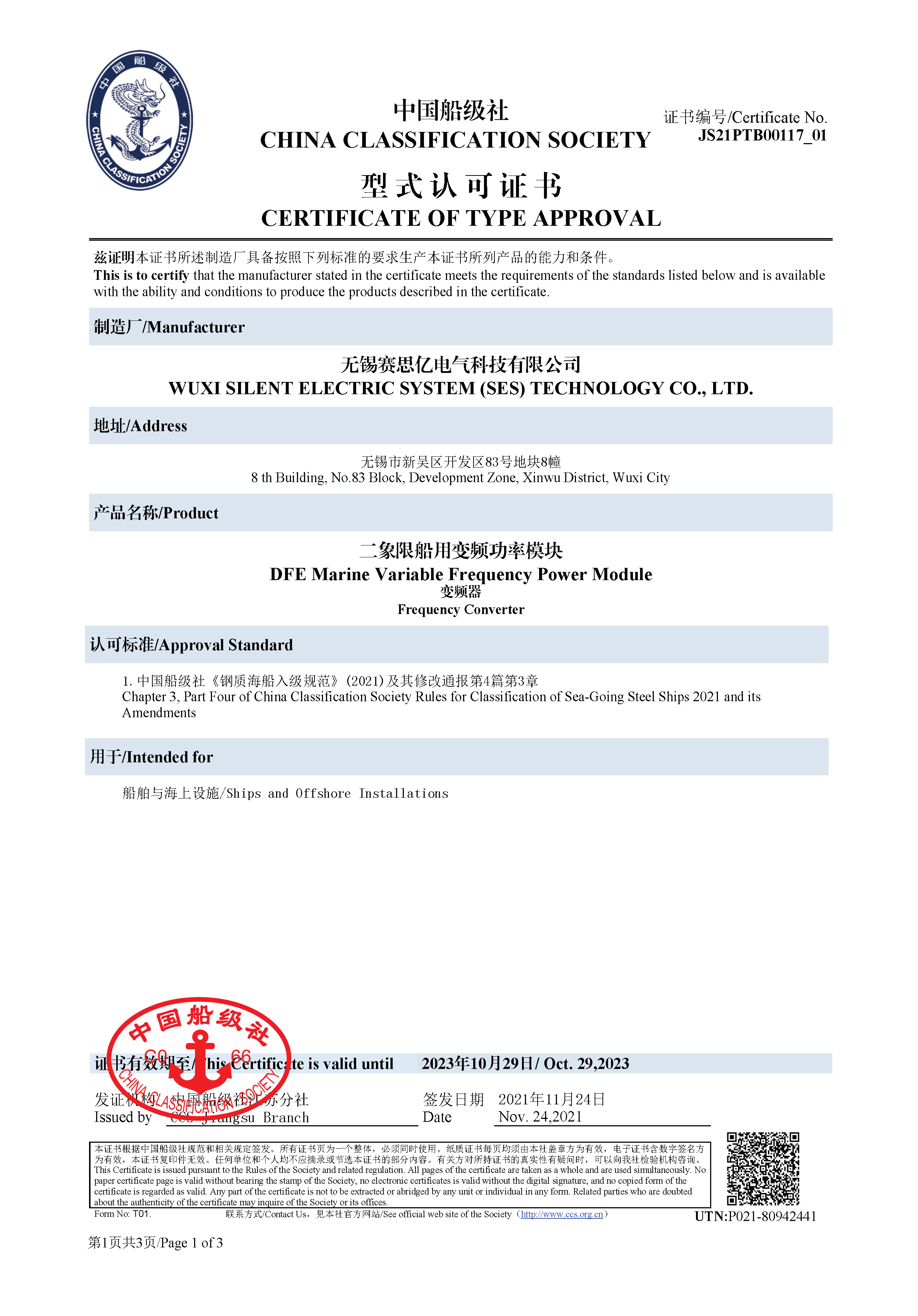 低壓船用核心功率模塊系列產(chǎn)品獲得了中國船級社、法國船級社、挪威船級社等主流船級社的型式認(rèn)可,