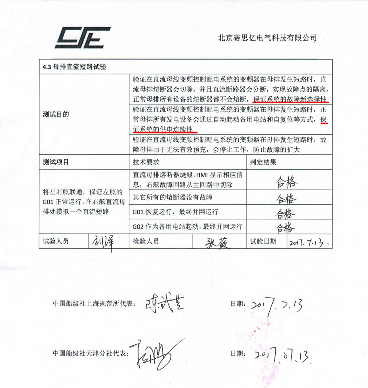 CCS認(rèn)可的直流組網(wǎng)系統(tǒng)短路試驗報告