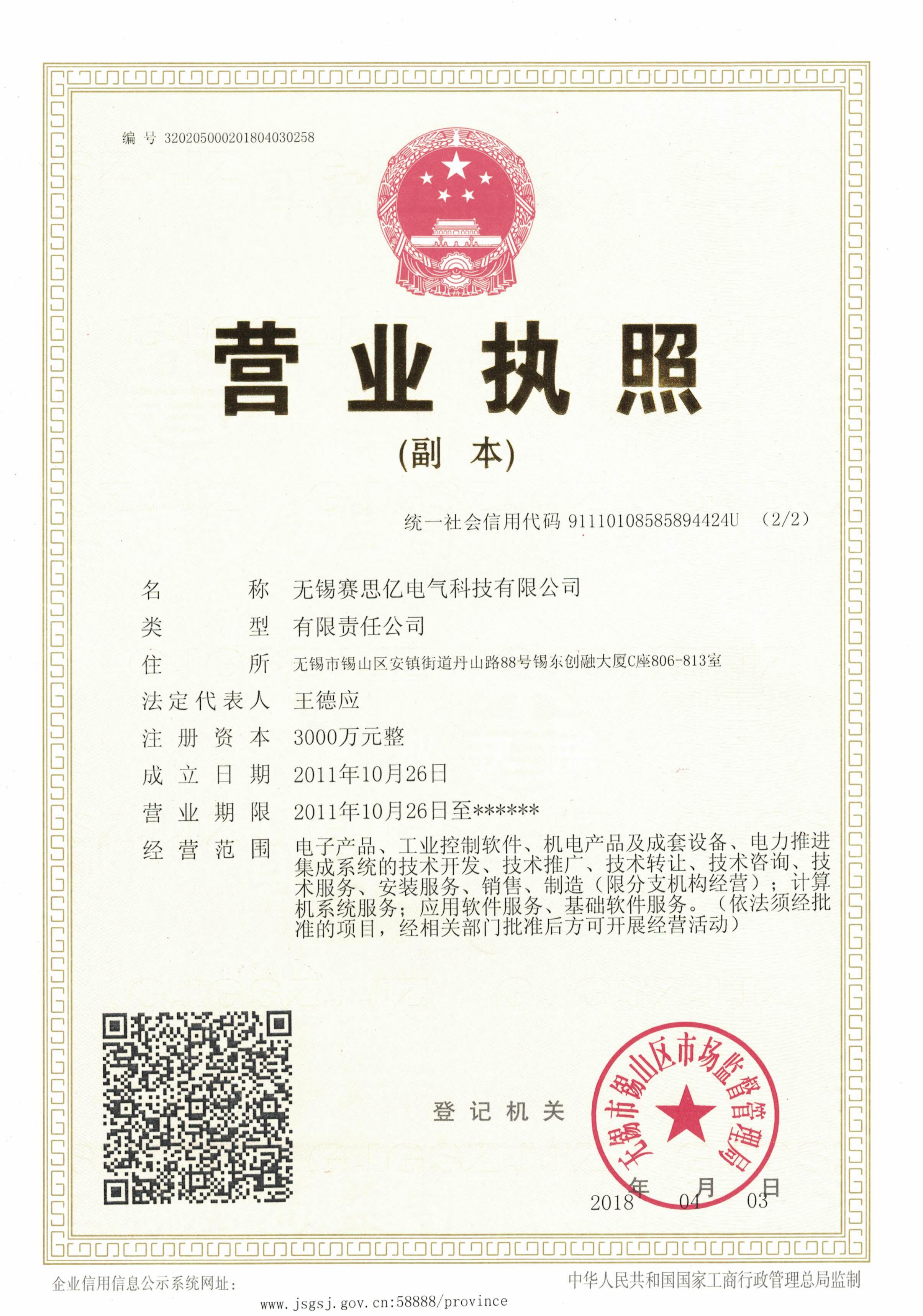 為了適應(yīng)公司未來經(jīng)營戰(zhàn)略及發(fā)展方向,北京賽思億電氣科技公司自2016年起逐步將生產(chǎn)基地與研發(fā)中心遷移至無錫,以無錫為中心輻射全國,并于近日取得了無錫市錫山區(qū)市場和質(zhì)量監(jiān)督管理局換發(fā)的《營業(yè)執(zhí)照》,完成了工商變更登記手續(xù),正式更名為“無錫賽思億電氣科技有限公司”。更名后,賽思億的相關(guān)股權(quán)、人員組成、內(nèi)部架構(gòu)和各類合同、合作協(xié)議均保持不變。