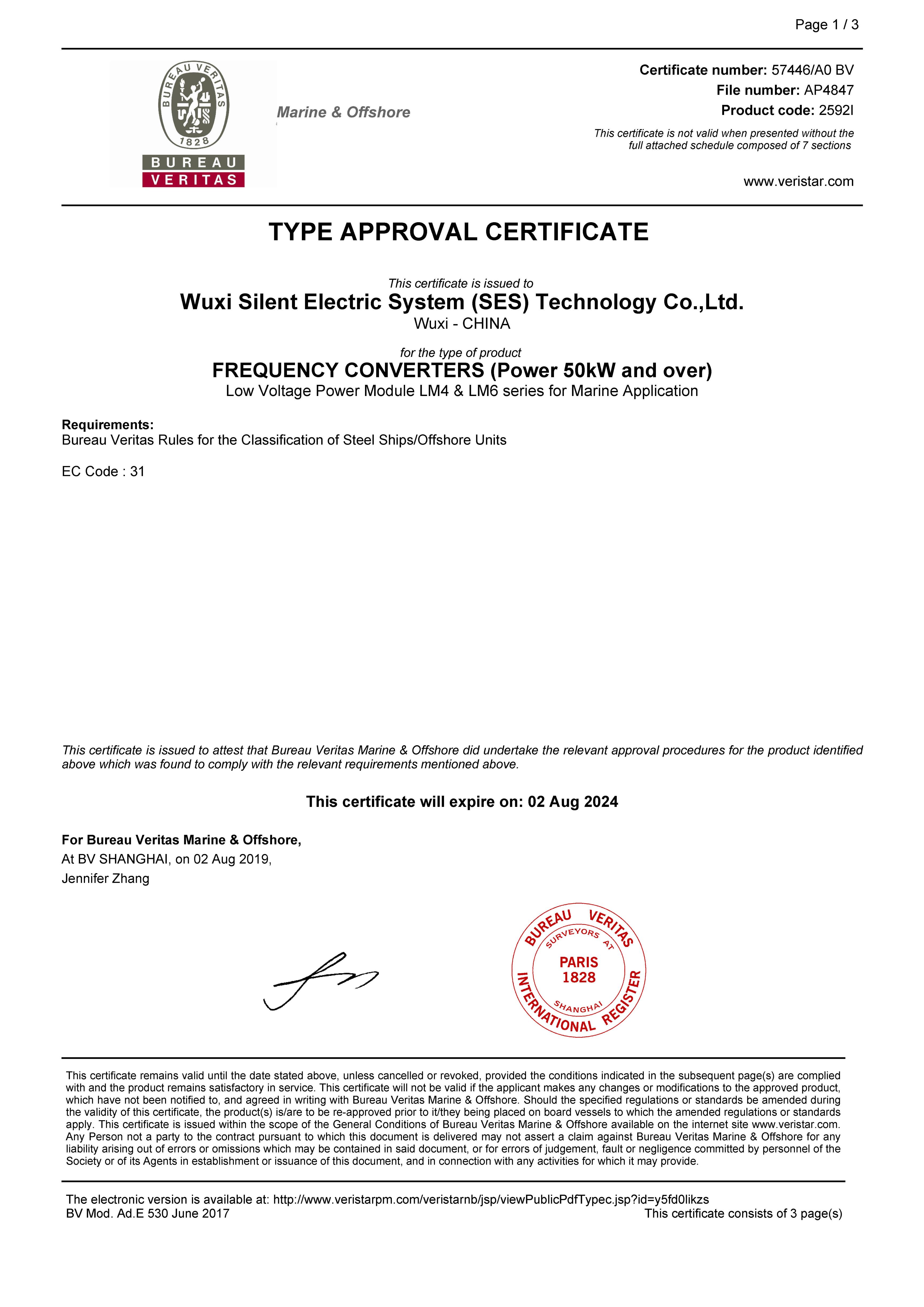 本項(xiàng)目采用了賽思億公司自主研發(fā)的有源前端形式(AFE)的國產(chǎn)船舶電力推進(jìn)變頻器,其中所使用的是賽思億自主研發(fā)的變頻電控設(shè)備。賽思億的變頻電控設(shè)備具有CCS、RINA、BV三大船級社型式認(rèn)證,已廣泛應(yīng)用于直流組網(wǎng)電力推進(jìn)、交流組網(wǎng)電力推進(jìn)、軸帶混合動力和岸電變頻電源等場景中,該風(fēng)電安裝平臺是國產(chǎn)變頻在海上風(fēng)電領(lǐng)域的再次應(yīng)用。