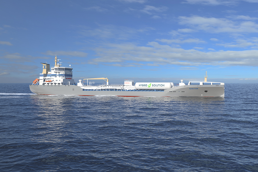 15000噸雙燃料化學(xué)品船總長147米,型寬22米,服務(wù)航速14.5節(jié),續(xù)航力6600海里,入級BV船級社,混合動力系統(tǒng)配備電池(424kWh),抱軸電機(jī)額定功率為1000kW,采用雙殼單甲板單機(jī)單槳設(shè)計,是新一代的HYBRID船型。