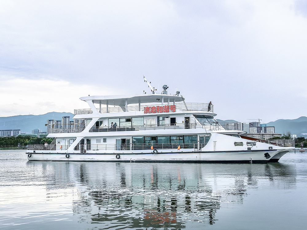 “滇池和諧號(hào)”船長(zhǎng)39.8米,型寬10米,雙體船,B級(jí)航區(qū),載客150人,動(dòng)力系統(tǒng)搭載中國(guó)船舶無錫賽思億S-Renewable 新能源電力推進(jìn)系統(tǒng),整船配置鋰電池總?cè)萘抗灿?jì)1198kWh,2臺(tái)75kW推進(jìn)電機(jī),用于昆明滇池高原湖泊的觀光游覽服務(wù)。