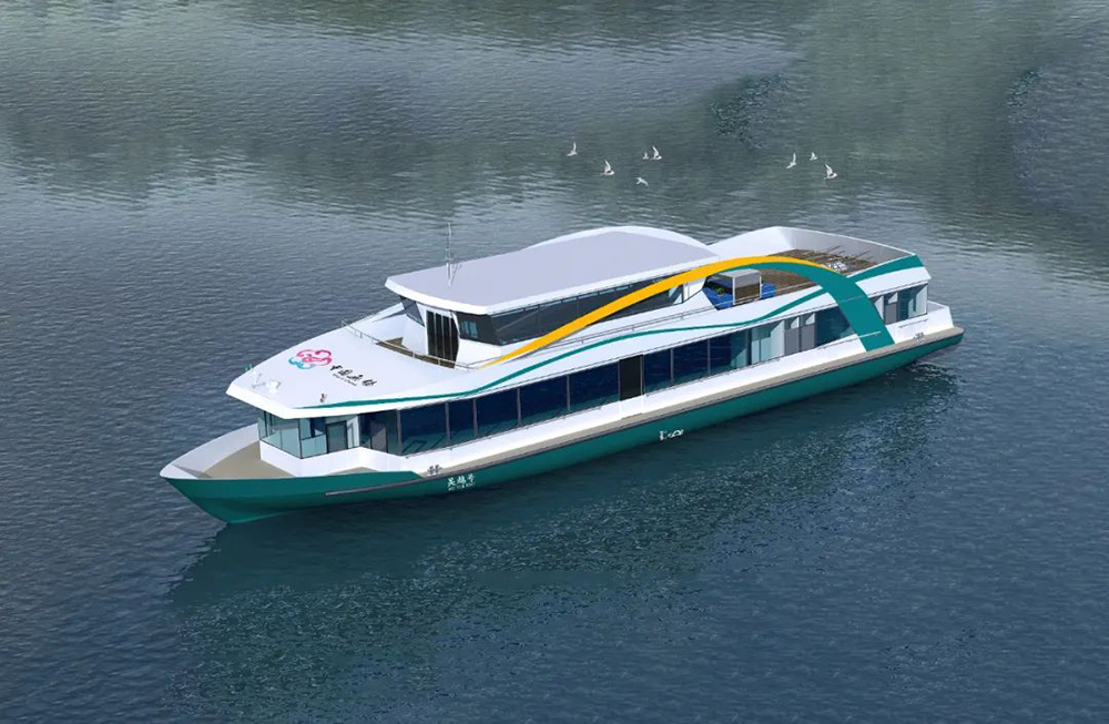 該船最大船長40m,型寬9m,型深2m,采用賽思億基于直流組網(wǎng)技術(shù)的S-Hybrid-R混合動(dòng)力系統(tǒng),整個(gè)系統(tǒng)配置2臺(tái)160kW的發(fā)電機(jī)組,2套245kWh鋰電池組,驅(qū)動(dòng)2臺(tái)90kW的主推電機(jī),關(guān)鍵變頻電控設(shè)備采用賽思億自主知識產(chǎn)權(quán)產(chǎn)品。賽思億S-Hybrid-R混合動(dòng)力系統(tǒng)具備多種推進(jìn)模式,系統(tǒng)噪音低,動(dòng)力系統(tǒng)先進(jìn),可滿足景區(qū)不同需求。該項(xiàng)目是賽思億在全國重點(diǎn)景區(qū)的又一示范!