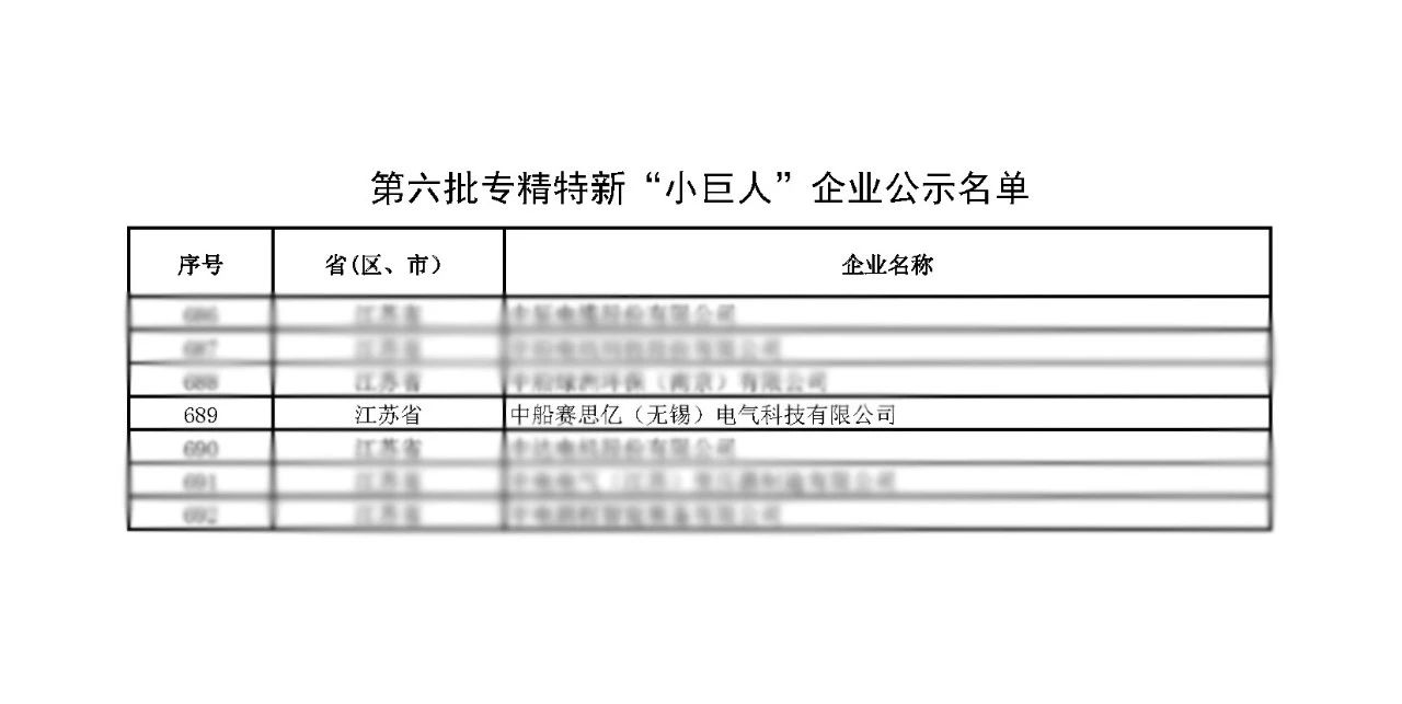 近日,江蘇省工信廳發(fā)布了第六批國家專精特新“小巨人”企業(yè)名單,中船賽思億(無錫)電氣科技有限公司在列。專精特新“小巨人”企業(yè)是“專精特新”中小企業(yè)中的佼佼者,是專注于細分市場、創(chuàng)新能力強、市場占有率高、掌握關(guān)鍵核心技術(shù)、質(zhì)量效益優(yōu)的排頭兵企業(yè)。