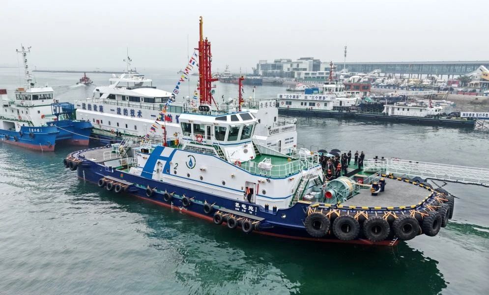 6月26日,馬力最大、鋰電池容量最大的全國(guó)首艘氫電拖輪“氫電拖1”輪在山東港口青島港正式入列。“氫電拖1”輪創(chuàng)新采用全球首創(chuàng)的 “氫燃料電池+液冷鋰電池”混合動(dòng)力模式、北斗集成系統(tǒng)、全自動(dòng)智能岸基充電等技術(shù),填補(bǔ)了國(guó)內(nèi)多項(xiàng)空白。