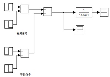 系統(tǒng)希望對有用信號進行動作,但是想消除干擾信號的影響。為了這個目的,構(gòu)筑一個低通濾波器: