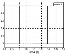 這里討論一階低通濾波器的一種應(yīng)用。左圖為一階低通濾波器的信號輸入,在1s的時候,有一個長度為100ms的有用脈沖信號進入,在1.19s時,有一個長度為0.1ms的干擾信號進入。