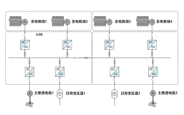 柴油機組為動力源,推進電機驅(qū)動推進器