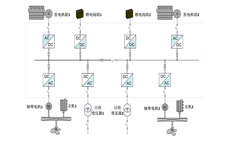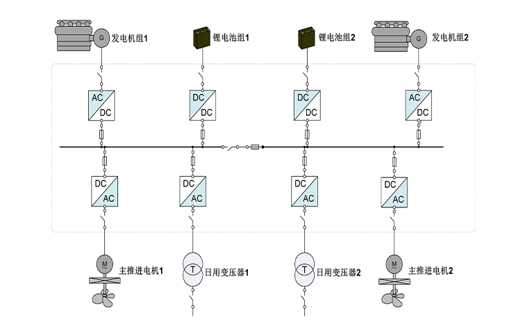 • 柴油主機/發(fā)電機組/電池三種能源之間的混合形式;